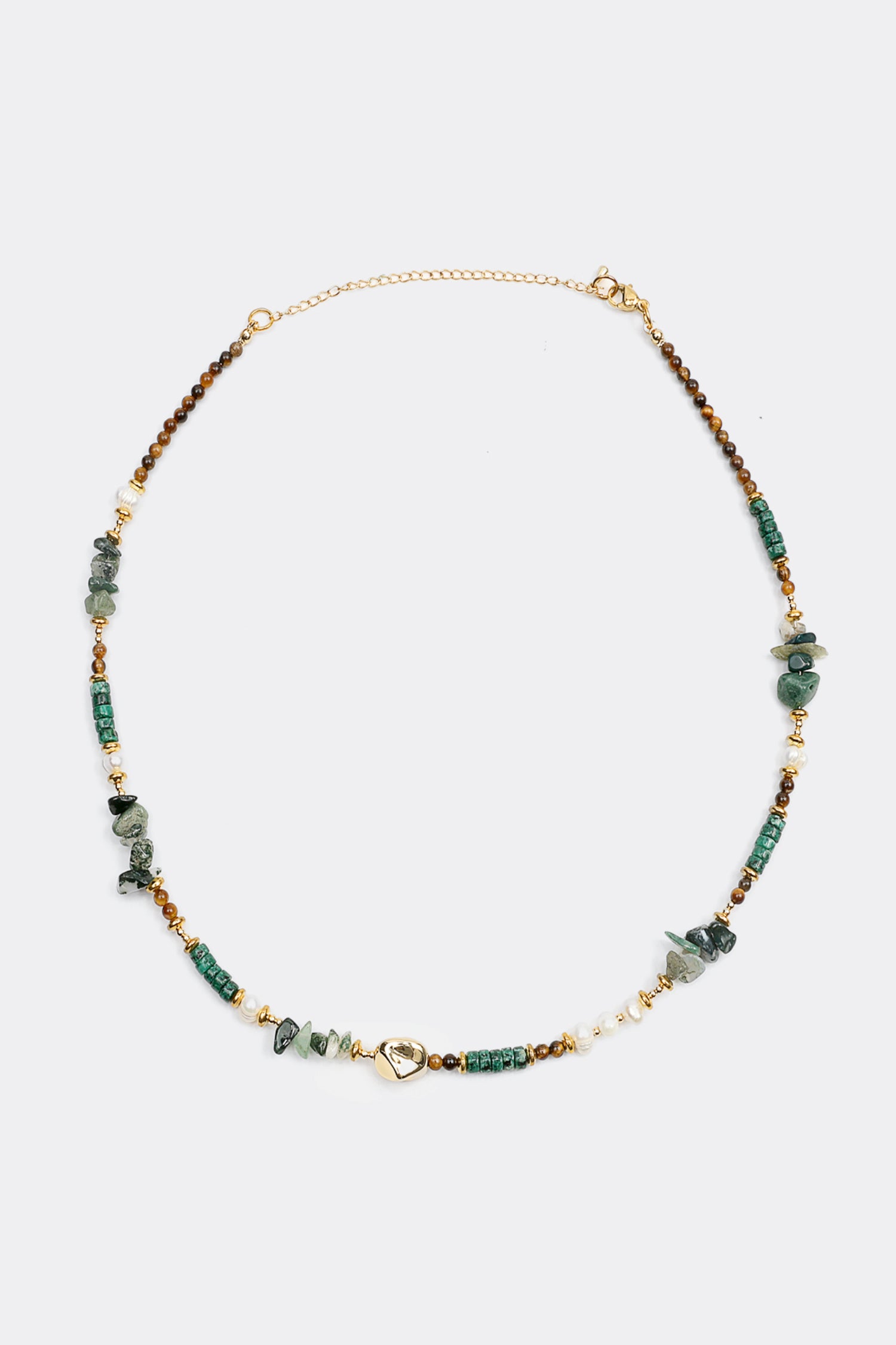 Faux Pearl & Stone Beaded Necklace$36.62 USD