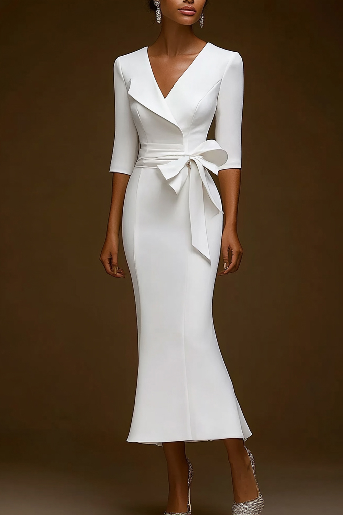 Work Semi Formal Bow Knot Half Sleeve Midi Dress$155.00 USD