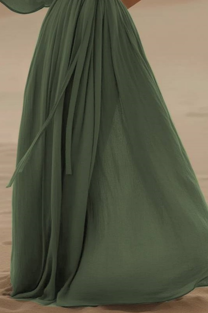 Channel free-spirited elegance in this emerald green bohemian maxi dress. The flattering deep V-neckline and fluid swing silhouette create effortless movement, while the floor-length design adds drama. Perfect for festivals or beachside weddings, its lightweight fabric and breezy cut offer both comfort and head-turning boho glamour.