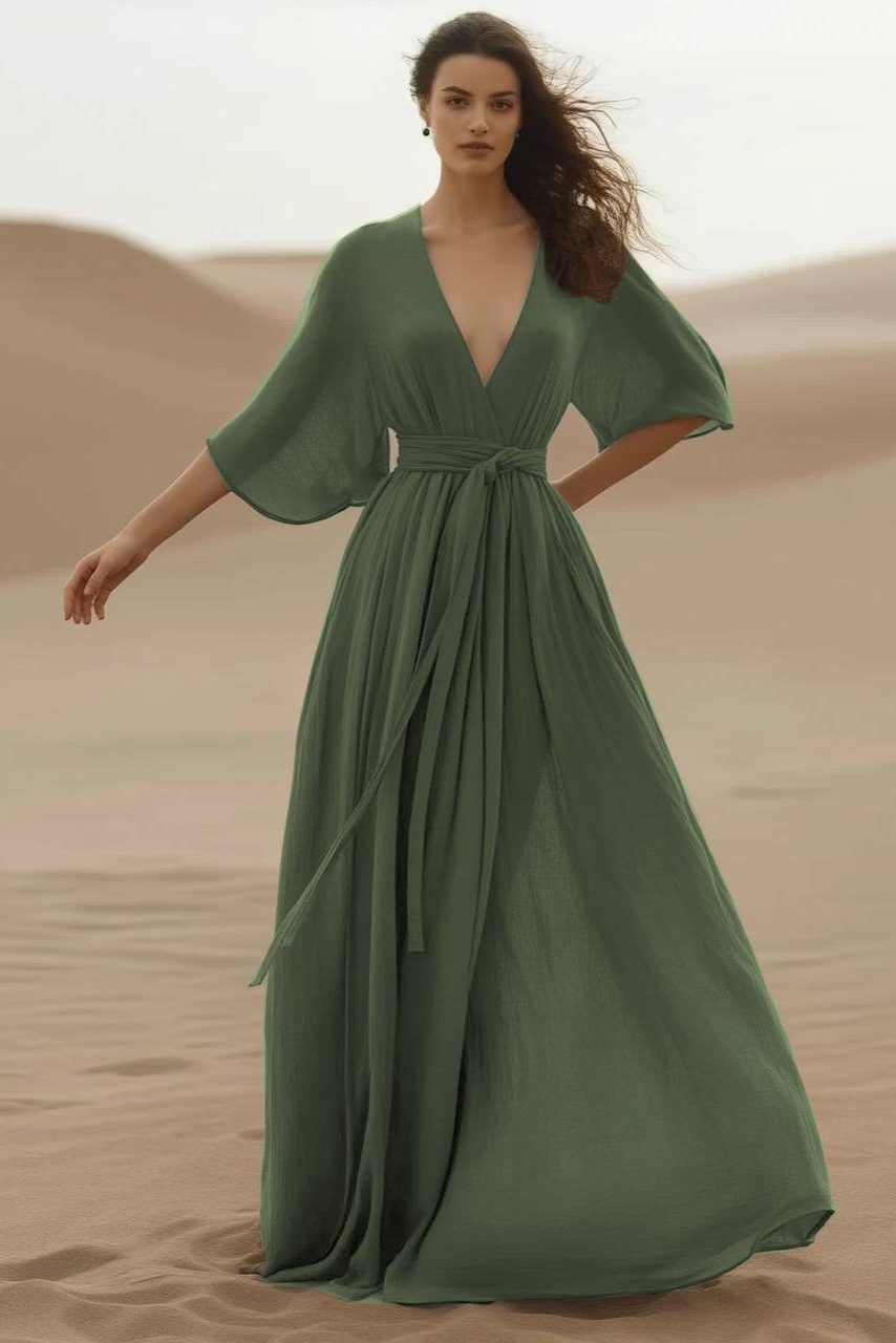 Bohemian Swing Dress Green Deep V Maxi Dress