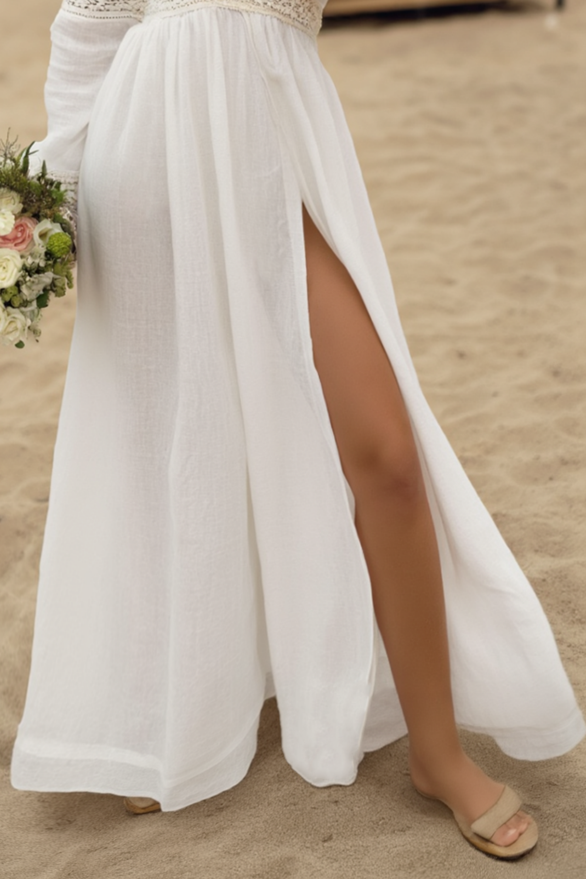 Effortlessly elegant, this flowing white boho dress features a flattering V-neckline and a dreamy floor-length silhouette. Lightweight fabric drapes beautifully with every step, while delicate lace or embroidery adds romantic charm. Perfect for beach weddings, summer festivals, or breezy evenings, it pairs perfectly with barefoot sandals or layered boho jewelry for a whimsical, feminine look.