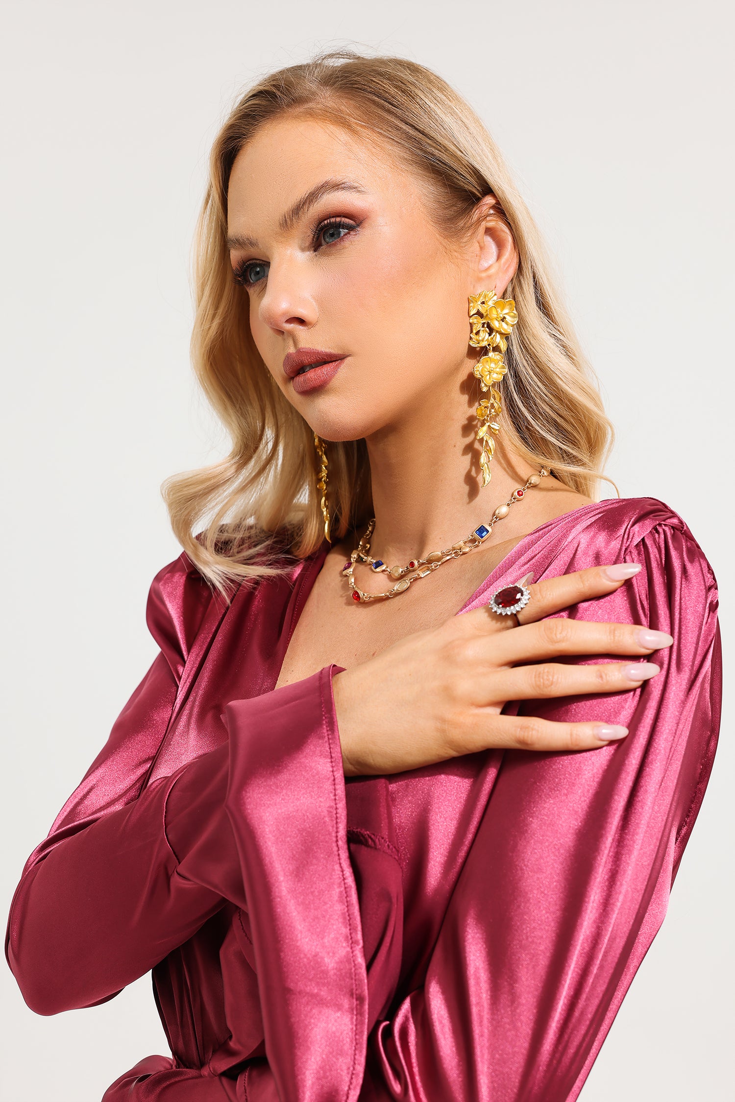Oval Red Rhinestone Ring