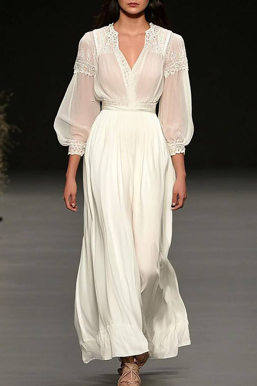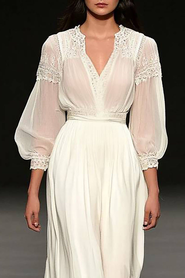 Vacation Casual Lace Dress Ultra-Light V-Neck Maxi Dress