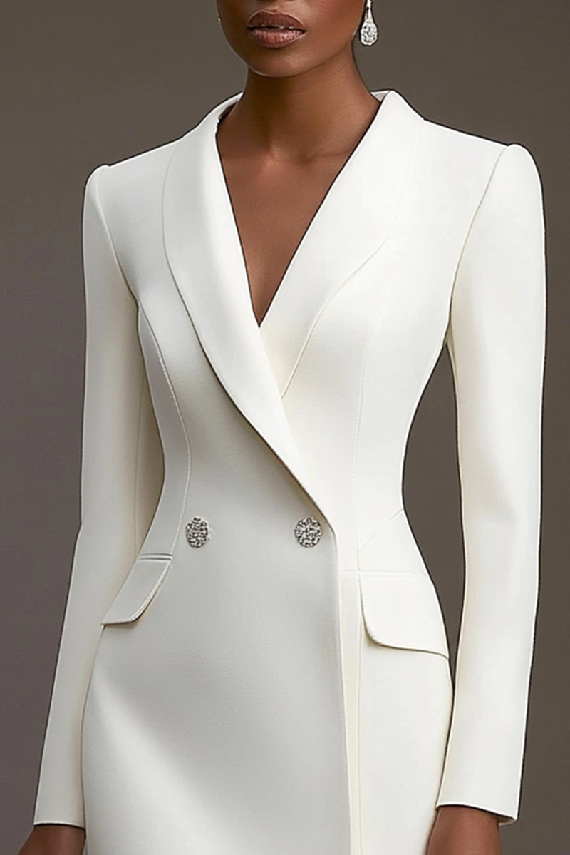 Step into professionalism and style with this White Blazer Long Sleeve Mini Dress, designed for the modern working woman. The tailored blazer silhouette and long sleeves create a polished, confident look suitable for office meetings, business events, or work-related gatherings. Crafted from high-quality fabric, this mini dress combines elegance, comfort, and versatility for your professional wardrobe.